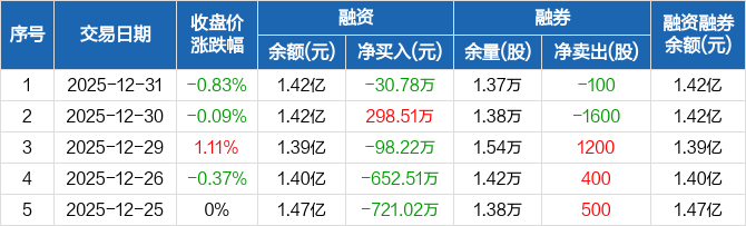 苏美达:融资净偿还30.78万元,融资余额1.42亿元(12-31)