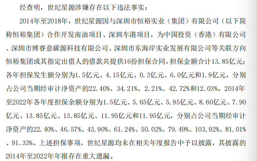上述担保事项,世纪星源未在相关年度报告中予以披露,存在重大遗漏。