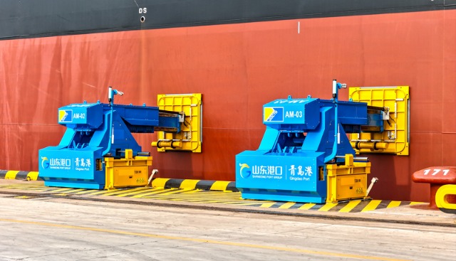 2026年1月1日,我国首套真空式自动系泊系统在山东港口青岛港全自动化集装箱码头正式投用。该系统创新构建了“远程集控+移动终端+本地单机”三级智能管控模式,通过部署在泊位上的13套系泊单元,可自动完成对200米以上大型集装箱船舶的精准吸附与固定,将单船系泊作业时间从传统的20-30分钟大幅缩短至30秒以内,实现了该环节从人工操作到自动智能作业的效率跨越。 新华社发(张进刚摄)
