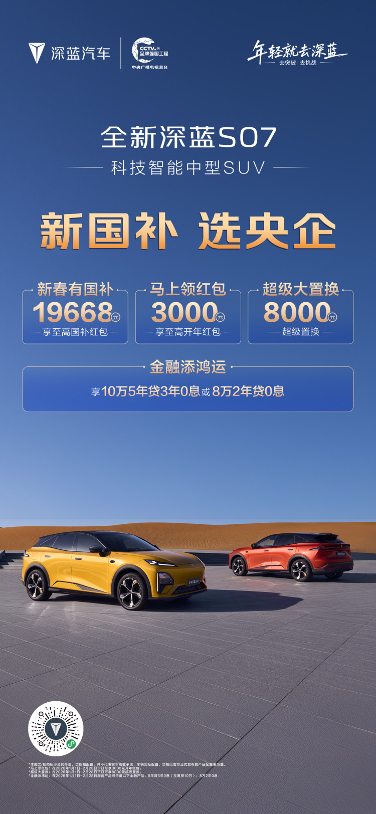 即日起至2026年2月28日,消费者可通过线上渠道扫码参与,或前往线下门店体验。深蓝汽车以诚意回馈市场,彰显央企社会责任担当。