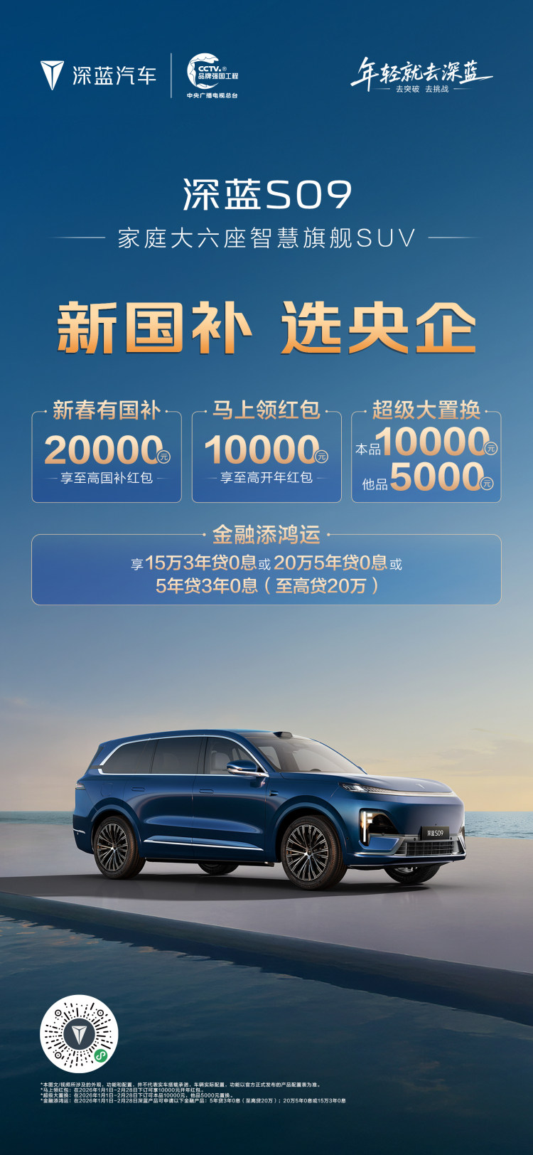 近日,深蓝汽车作为央企新能源代表品牌,积极响应国家“新国补”政策,推出系列购车福利,助力消费者轻松开启绿色出行。