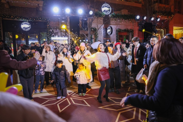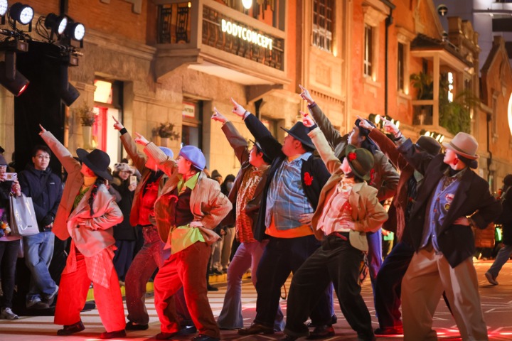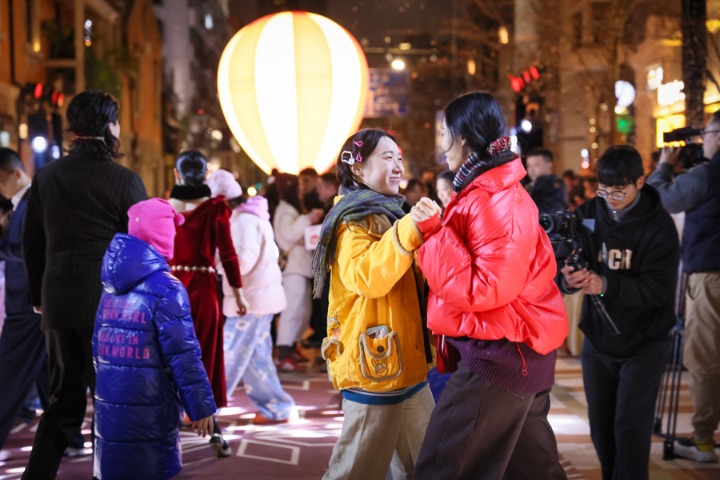 1月1日傍晚,华灯初上,茂名北路褪去白日的喧嚣,华丽变身为一座开放式舞台。上海张园携手上海国际舞蹈中心剧场,联袂发起"百人共舞",以"舞启新程"张园新年舞会之名,让爱舞的灵魂在此温暖相遇。随着探戈、爵士、摇摆舞及街舞等多元舞蹈表演轮番登场,舞者的热情与现场梦幻的"飘雪"装置共同驱散了冬夜寒意。与现场观众的即兴互动与舞蹈教学让欢快的节拍感染每一位在场者,将街区的迎新氛围推向温暖高潮。