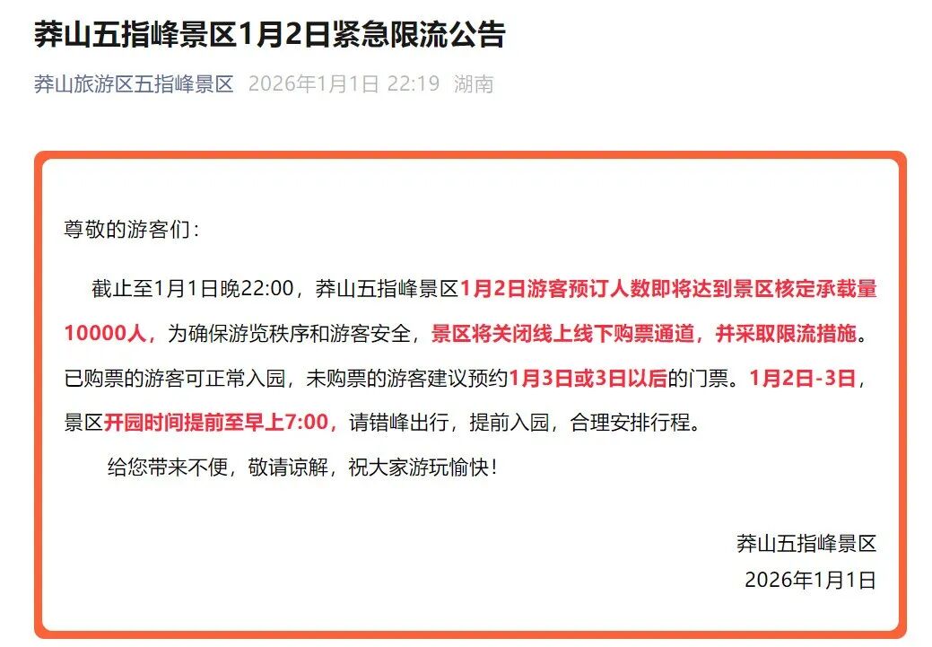 多个热门景区发布重要提醒