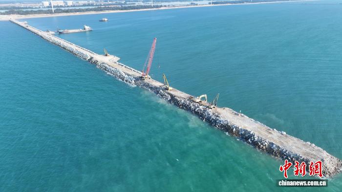1月1日,八所港高排港区一期工程正在进行防波堤建设。中交广航局供图