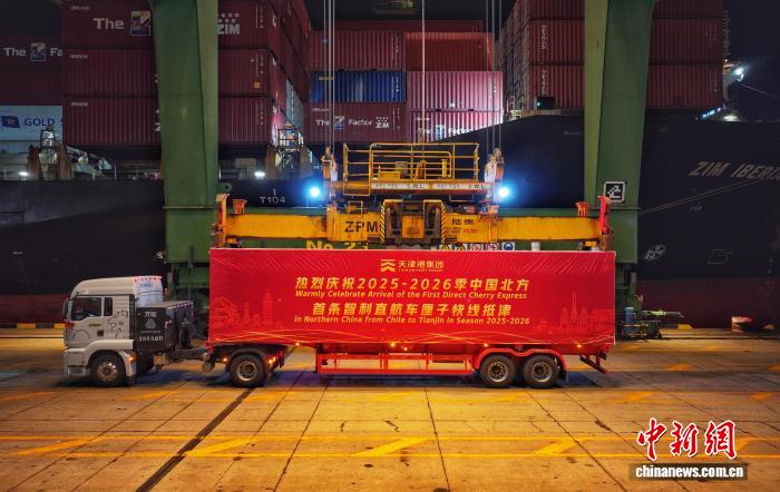 中新网天津1月2日电 (记者王君妍周亚强)1日晚,2025—2026产季我国北方首船智利进口车厘子搭乘“以星伊比利亚”轮顺利靠泊天津港太平洋国际集装箱码头。