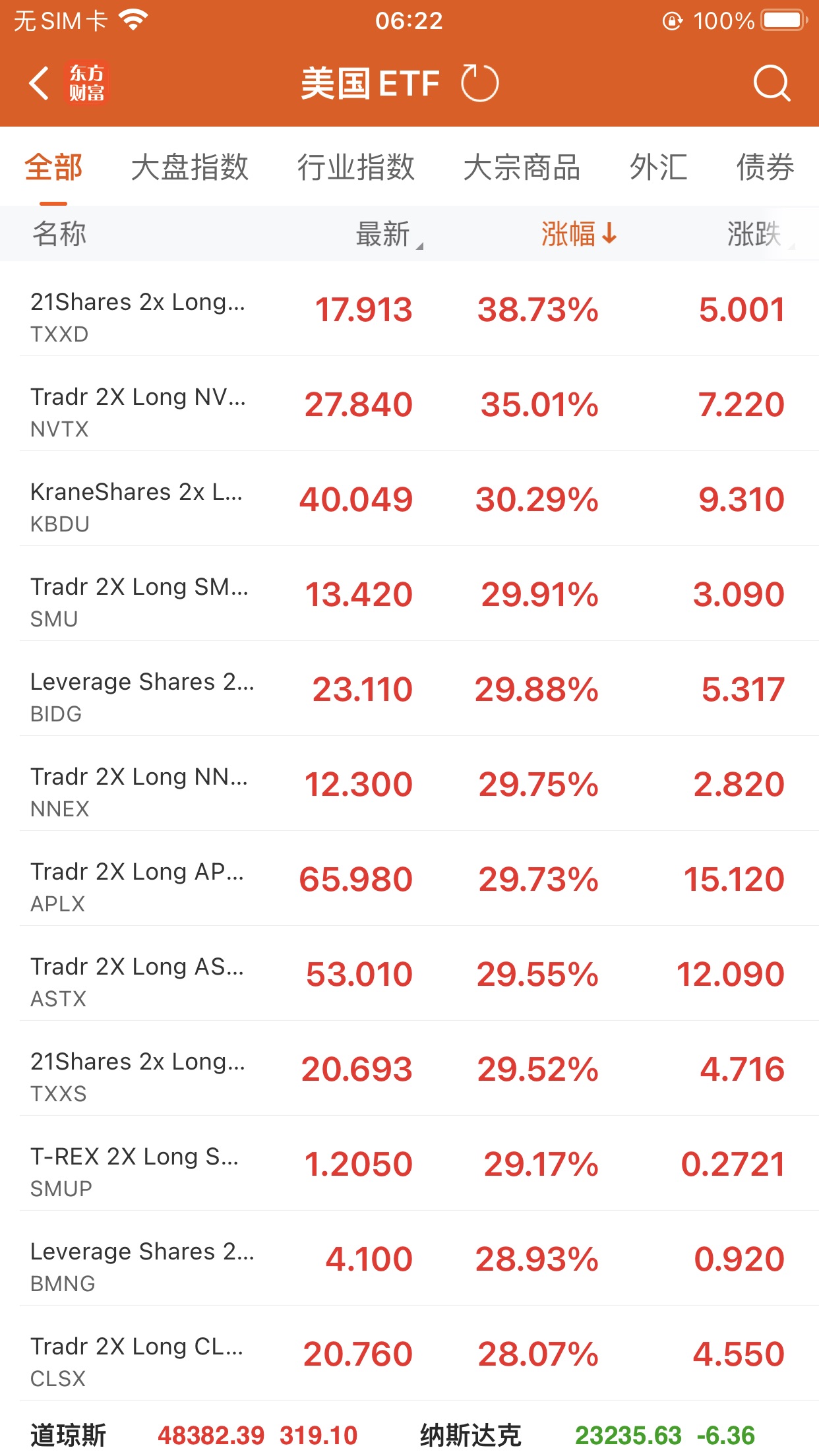 2倍做多NVTS ETF-Tradr(NVTX.US) 升35.01%,成交额464.59万美元。