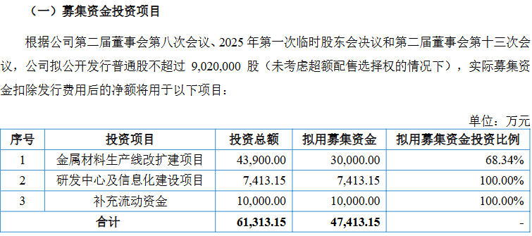 近日江苏苏讯新材料科技股份有限公司(以下简称“苏讯新材”)披露北交所招股说明书申报稿。公司拟募集资金4.74亿元,用于金属材料生产线改扩建项目、研发中心及信息化建设项目并补充流动资金。