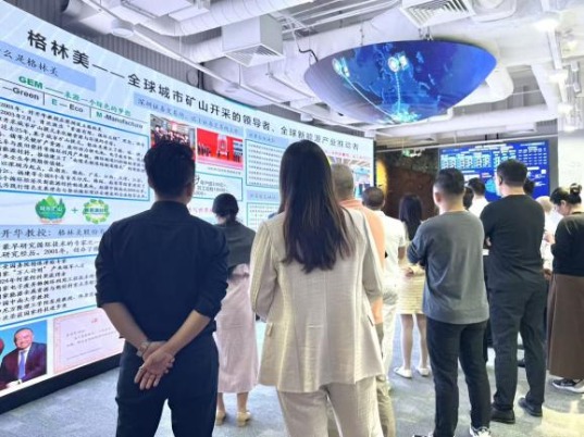 博物馆内的技术成果展区集中展示了格林美在电子废弃物绿色处理、新能源材料、动力电池循环等领域的突破。从镍钴钨回收再到锂电材料的高值化再造,公司多项业务已跻身全球第一梯队。投资者们在参观中了解到,格林美不仅实现废旧电池中镍、钴、锰、锂等高价值金属的精细化回收,更通过化学提纯法确保再生材料在性能上与原生资源无异,真正实现“废料回归为原料”。