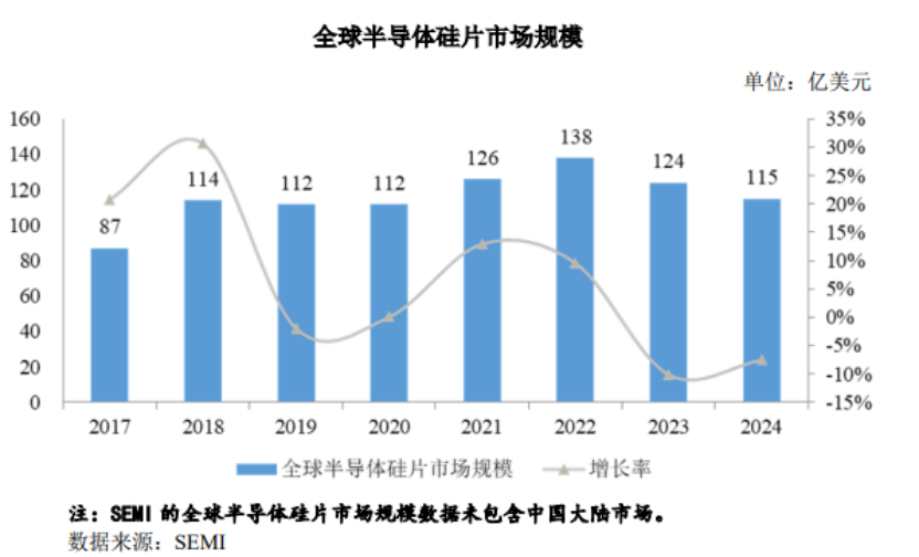 全球半导体产业正经历新一轮周期,2022至2024年全球半导体硅片销售额累计降幅达14%。在此背景下,国内半导体硅片企业上海超硅半导体股份有限公司(下称,“超硅股份”)的科创板IPO之路备受关注。