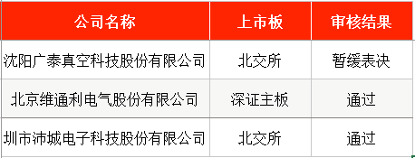 沈阳广泰真空科技股份有限公司(下称“广泰真空”)的北交所首发事项暂缓表决。