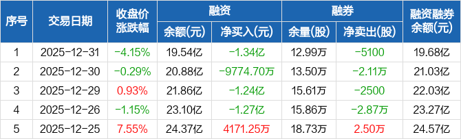 长川科技:连续4日融资净偿还累计4.82亿元(12-31)