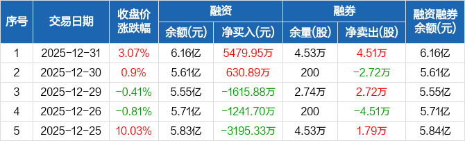 三维通信:融资净买入5479.95万元,融资余额6.16亿元(12-31)