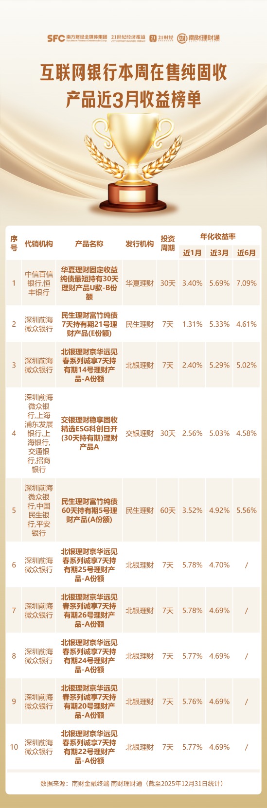 本周在售纯固收表现:股份行代销产品占优、互联网银行偏弱