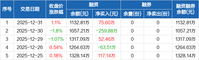 房地产ETF:融资净买入75.6万元,融资余额1132.81万元(12-31)