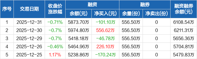 医疗ETF:融资净偿还101.1万元,融资余额5873.7万元(12-31)