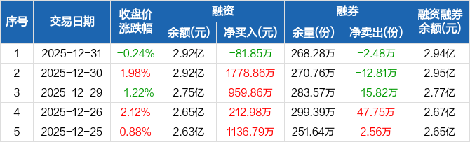 化工ETF:融资净偿还81.85万元,融资余额2.92亿元(12-31)