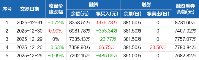 消费电子ETF:融资净买入1376.73万元,融资余额8358.51万元(12-31)