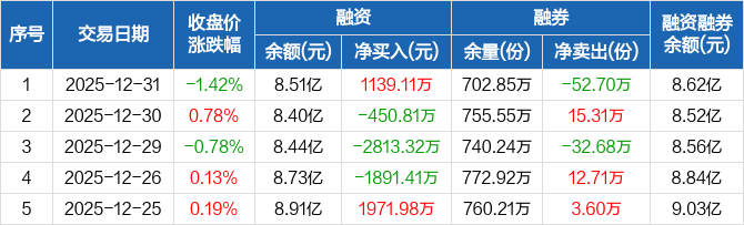 创业板50ETF:融资净买入1139.11万元,融资余额8.51亿元(12-31)