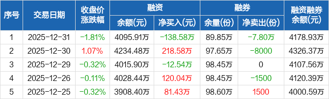 科创创业50ETF:融资净偿还138.58万元,融资余额4095.91万元(12-31)