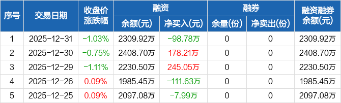 创新药ETF东财:融资净偿还98.78万元,融资余额2309.92万元(12-31)
