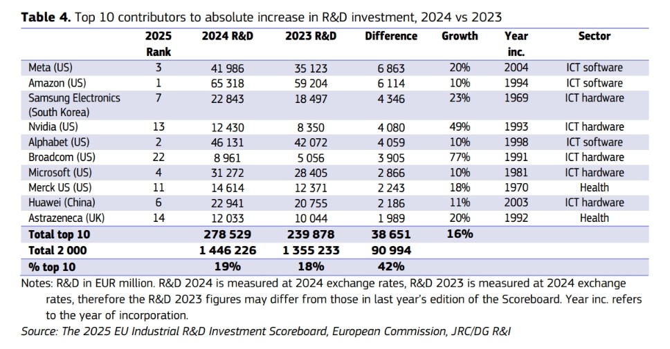 这一消息来源于欧盟委员会于去年12月22日在其官网披露的《2025年欧盟工业研发投资记分牌》(EU Industrial R&D Investment Scoreboard),该报告是由欧盟联合研究中心(JRC)编写的欧盟委员会出版物。