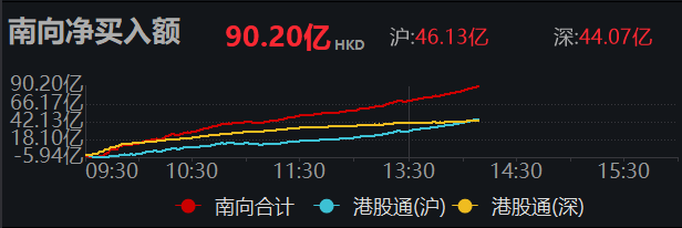 南向资金净买入超90亿港元