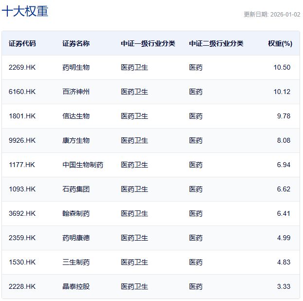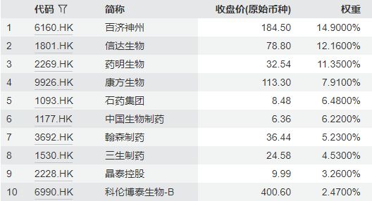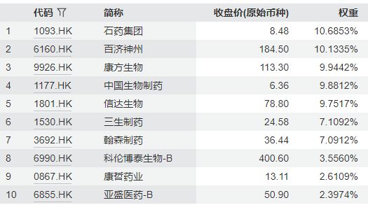 国证港股通创新药指数主要权重股