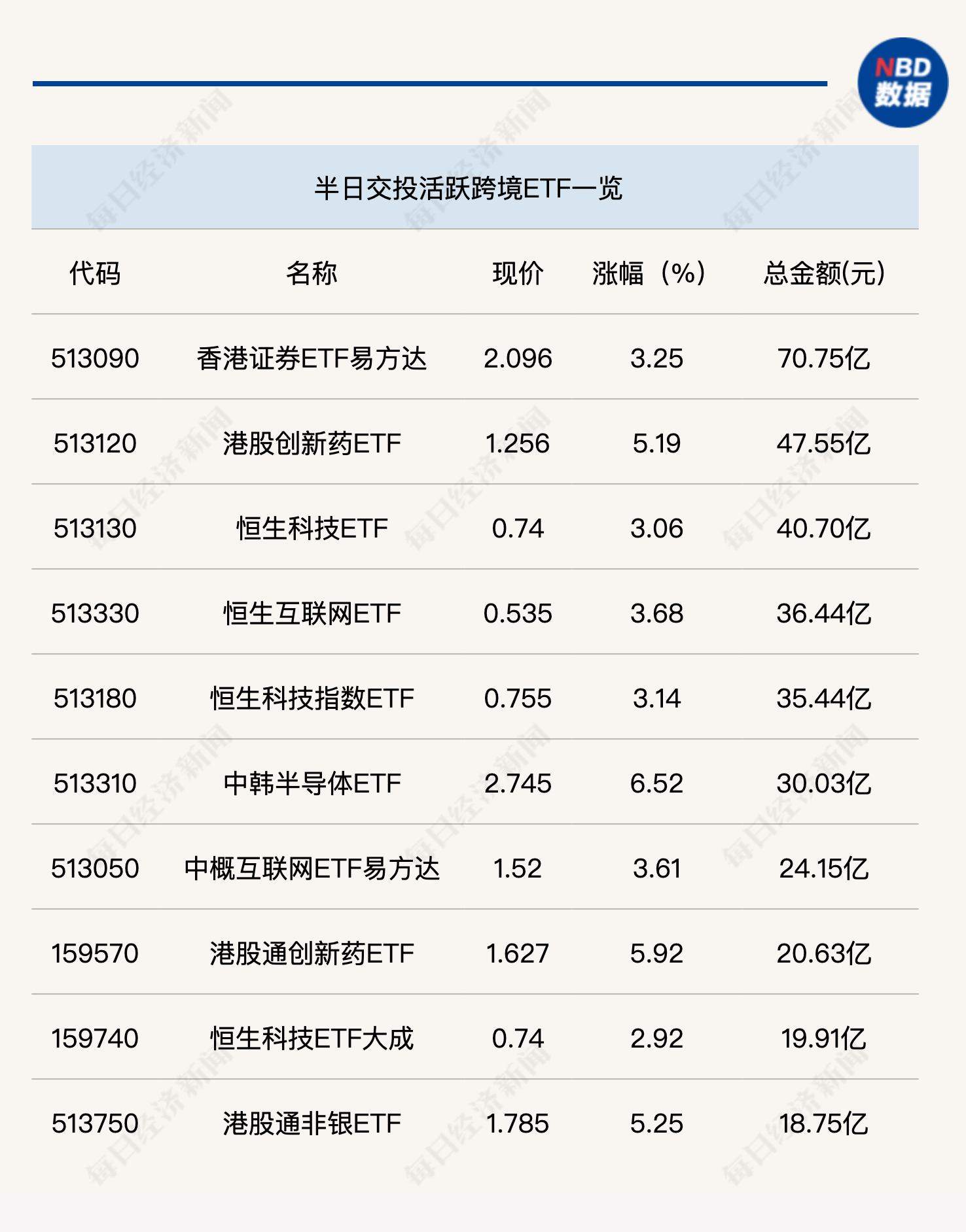 今日上午,ETF交易量显著放大。其中,科创芯片ETF(588200)半日成交金额达到27.8亿元,证券ETF(512880)和卫星ETF(159206)半日成交金额也均超过15亿元。跨境ETF方面,香港证券ETF易方达(513090)半日成交金额达到70.75亿元,交投活跃。