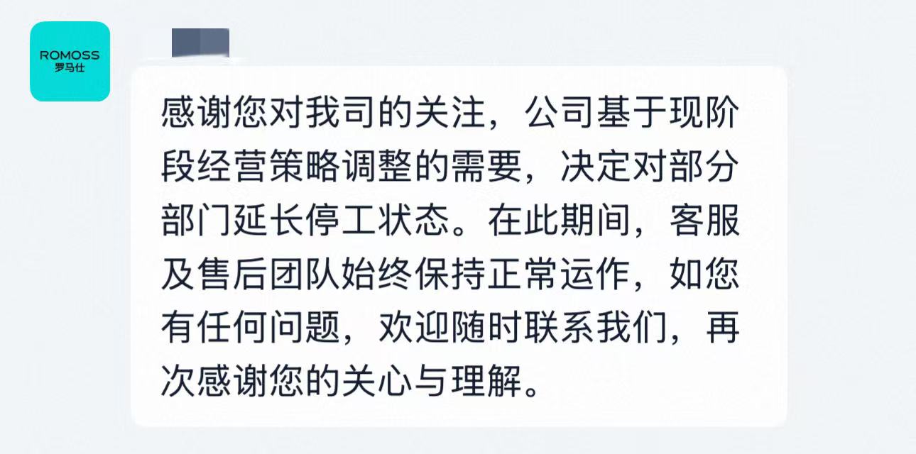 2025年以来,罗马仕曾因召回充电宝、大批移动电源3C认证被暂停等事件,多次引发舆论关注。据此前报道,2025年7月6日,罗马仕曾发布停工停产放假通知,宣布自7月7日起停工6个月,除召回相关员工外,其余员工停工停产。