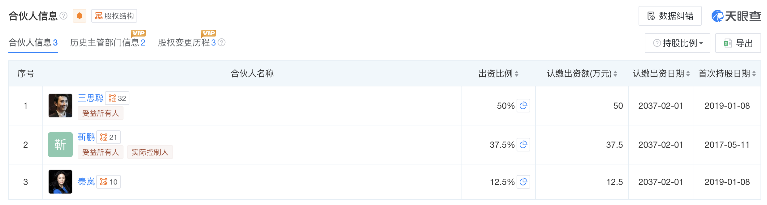天眼查信息显示,柠悦科技由靳鹏于2017年创立,注册资本100万人民币,是一家以从事科技推广和应用服务业为主的企业。王思聪、秦岚担任该公司合伙人,其中,王思聪出资比例为50%,秦岚为12.5%。