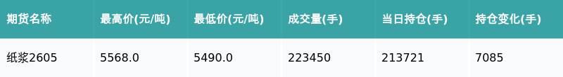 纸浆主力合约收跌0.43%