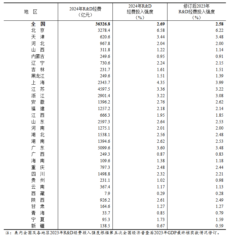 《公报》显示,2024年,广东研究与试验发展(R&D)经费投入强度(R&D经费与GDP之比)再创新高,达3.60%,高于全国平均水平(2.69%)0.91个百分点,仅次于北京和上海。