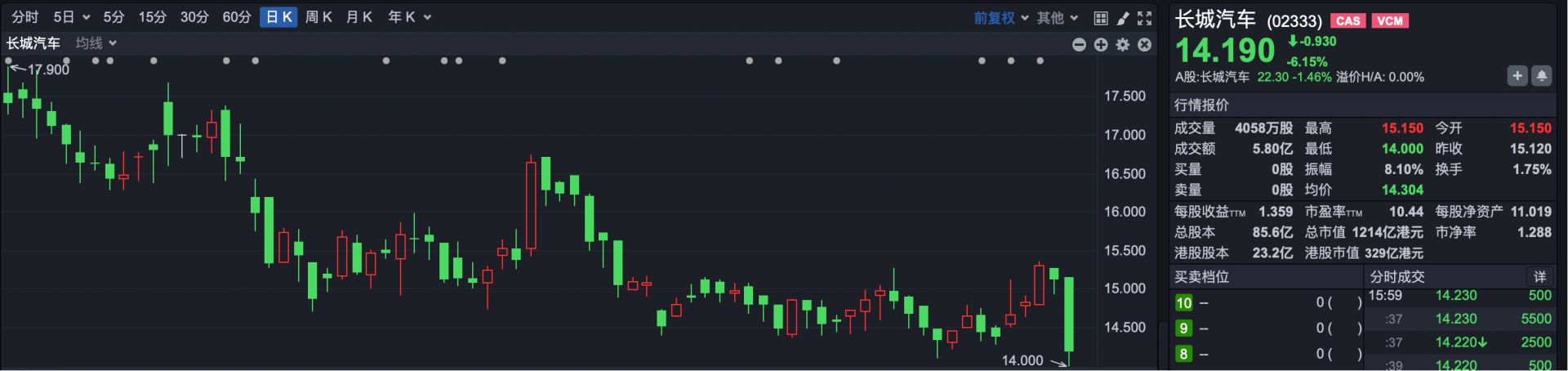 汽车股跌幅居前,长城汽车跌超6%,蔚来跌5.95%,小鹏、奇瑞、理想等均明显下挫。