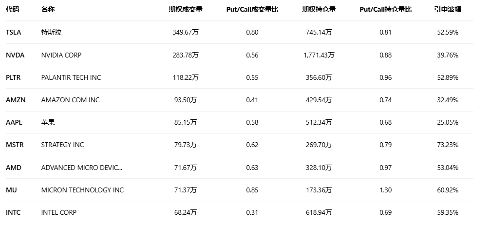 美股期权成交量排行榜前十