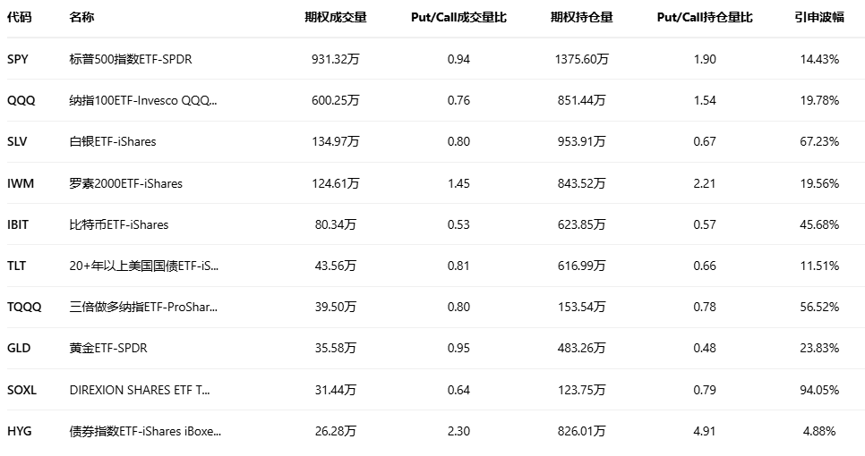 三、美股ETF期权成交榜美股ETF期权成交量排行榜前十