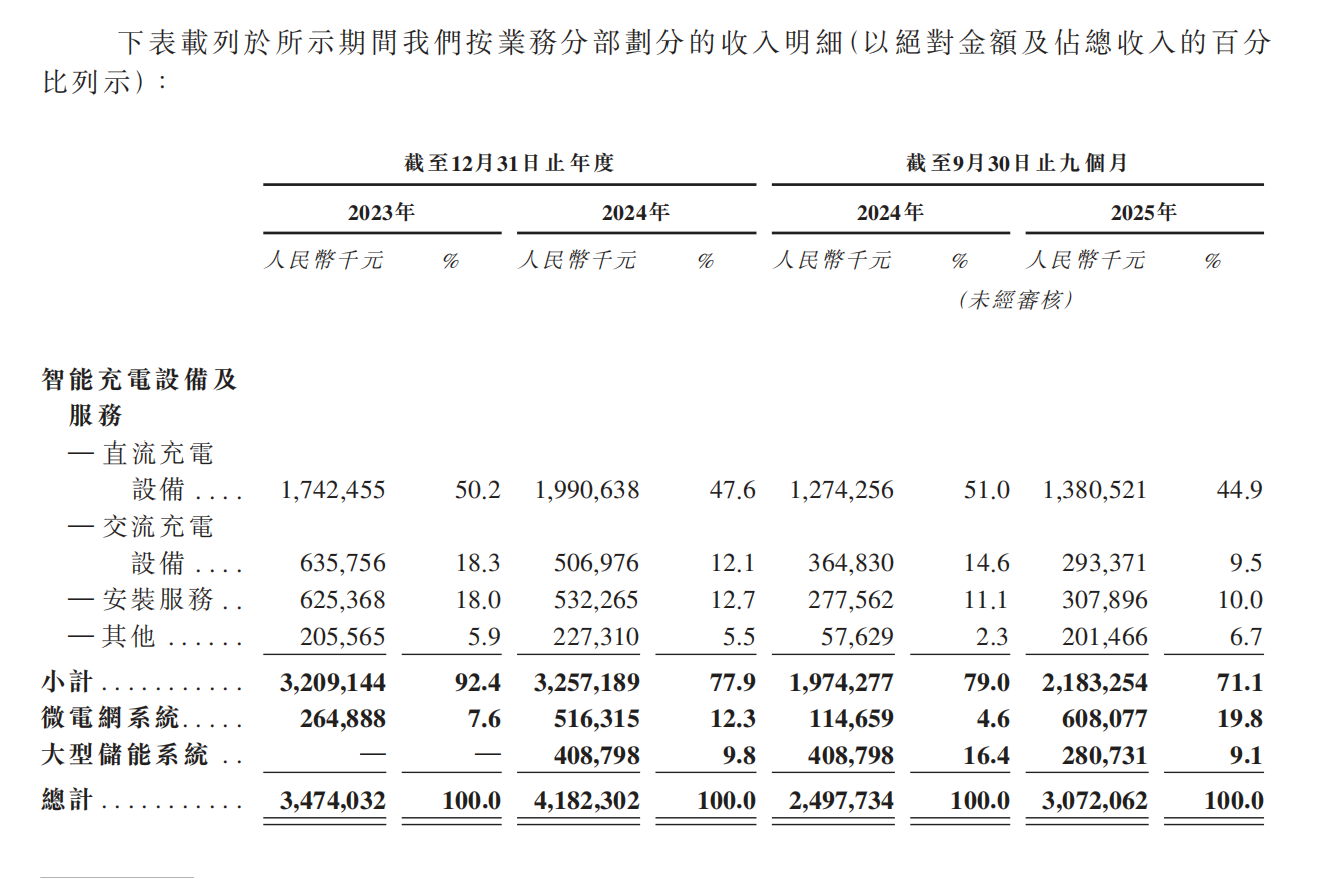 上市申请书显示,2024年,万帮能源智能充电设备及服务业务、微电网系统业务和大型储能系统业务收入,分别占总收入的比例为77.9%、12.3%、9.8%。