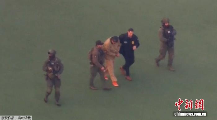 中新网1月5日电据美国媒体报道,当地时间5日,委内瑞拉总统马杜罗被从直升机转移到装甲囚车上,步履蹒跚,双手被缚。