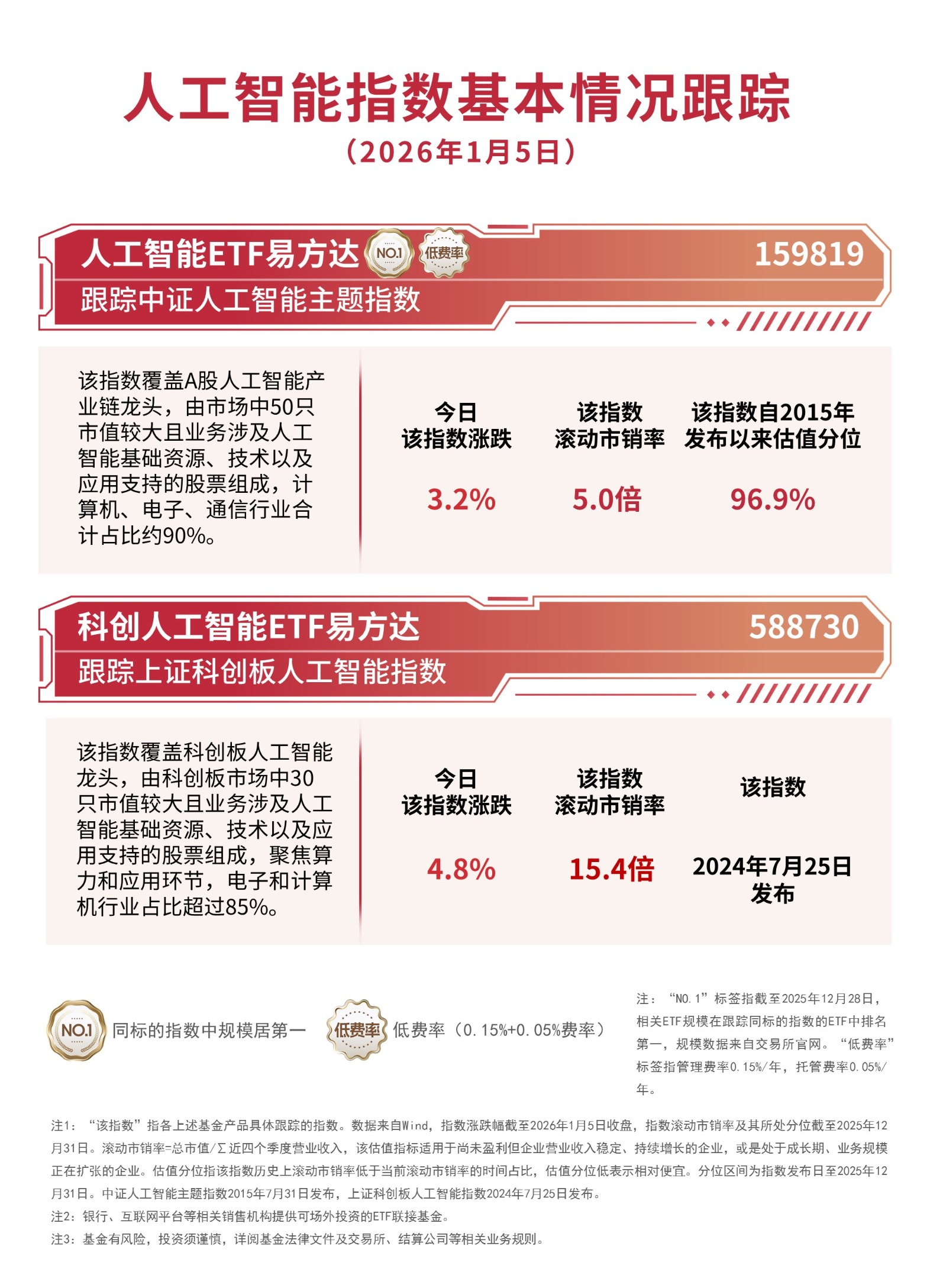 AI概念股全线走强,人工智能ETF易方达(159819)、科创人工智能ETF易方达(588730)标的指数双双涨超3%