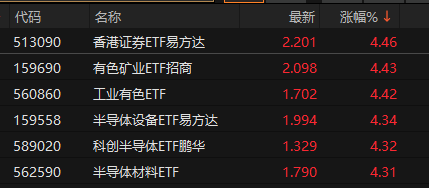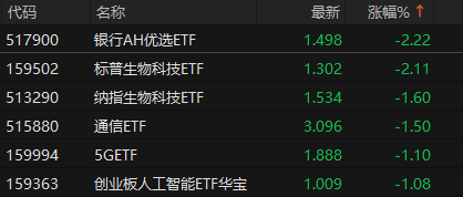 ETF午盘:香港证券ETF易方达涨4.46% 银行AH优选ETF跌2.22%