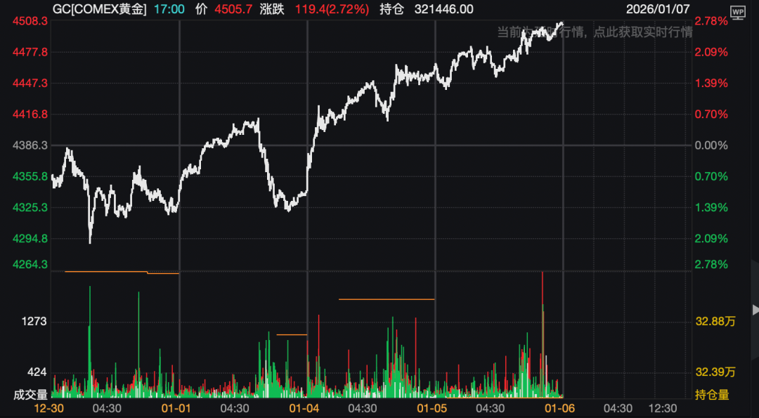 COMEX黄金期货再度升破4500美元/盎司,COMEX白银期货日内突破81美元/盎司。