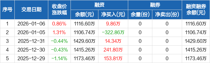 食品饮料ETF天弘:融资净买入9.86万元,融资余额1116.6万元(01-06)
