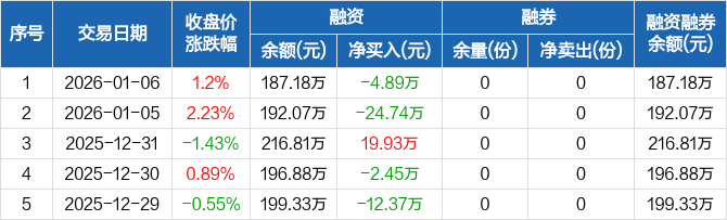 恒生中国企业ETF:融资净偿还4.89万元,融资余额187.18万元(01-06)