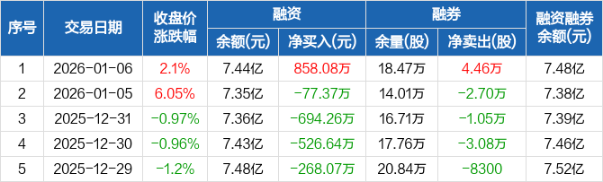 深桑达A:融资净买入858.08万元,融资余额7.44亿元(01-06)