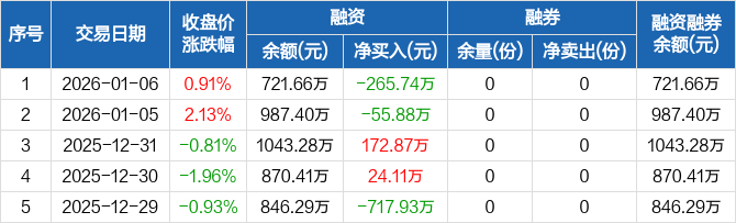 金ETF:融资净偿还265.74万元,融资余额721.66万元(01-06)