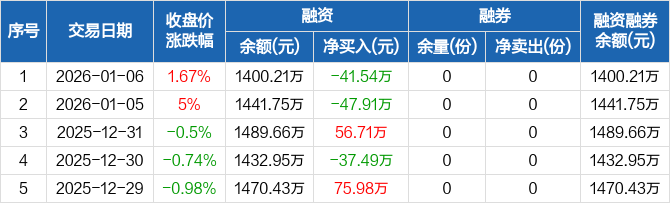 医疗ETF易方达:融资净偿还41.54万元,融资余额1400.21万元(01-06)