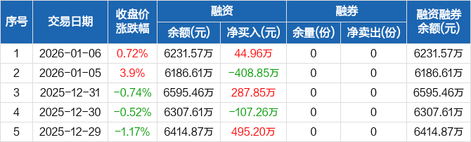 医药ETF:融资净买入44.96万元,融资余额6231.57万元(01-06)