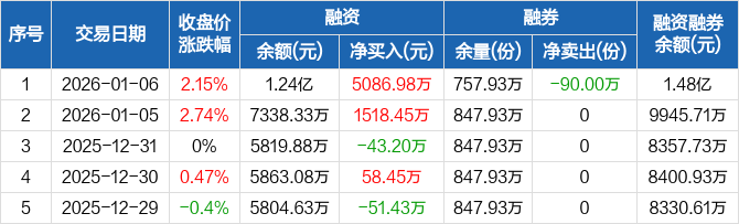 中证500ETF:融资余额1.24亿元,创近一年新高(01-06)