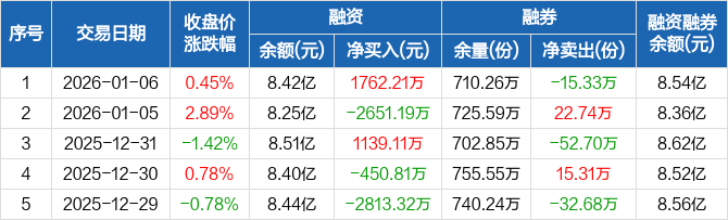 创业板50ETF:融资净买入1762.21万元,融资余额8.42亿元(01-06)