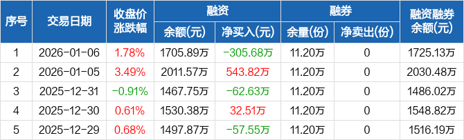 电子ETF:融资净偿还305.68万元,融资余额1705.89万元(01-06)