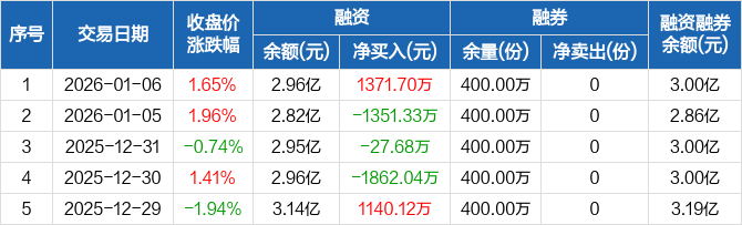电池ETF:融资净买入1371.7万元,融资余额2.96亿元(01-06)